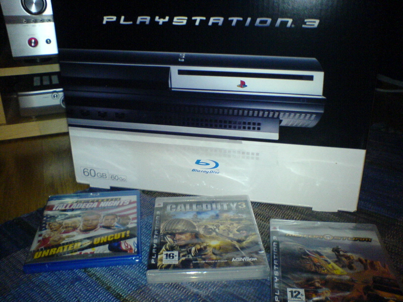 Jeg har også kjøpt PS3 i dag (kr 5485, Elkjøp), men venter med spill og BD til det blir mørkt (note to self: kjøp blendingsgardiner). For øyeblikket har jeg koblet den med kompositt til PC-skjermen for oppdatering og nedlasting av demoer. :)